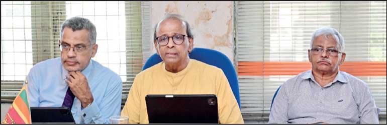 From left: Sri Lanka Chamber of Small and Medium Industries Immediate Past President Mohideen Cader, President Prof. Rohan De Silva and Vice President Colin Fernando — Pic by Sameera Wijesinghe
