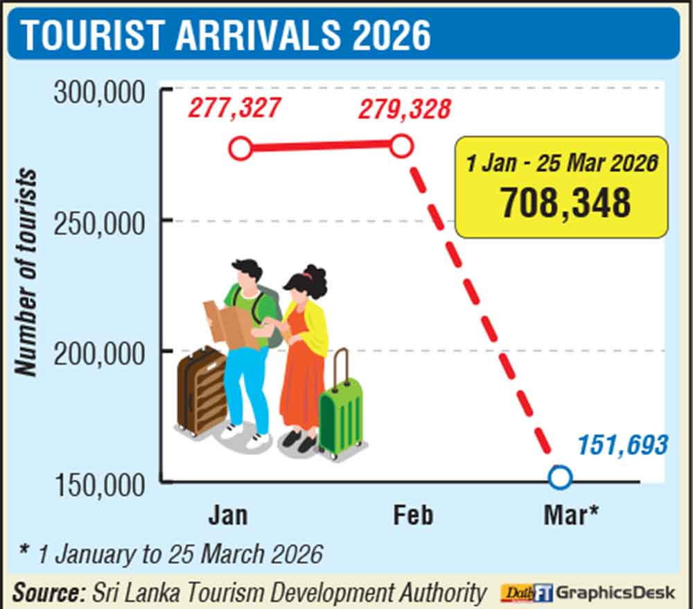 Sri Lanka’s tourism sector has surpassed the 700,000 visitor milestone for 2026, maintaining overall growth momentum despite a sharp slowdown in March triggered by the escalating Middle East conflict and its impact on global aviation.