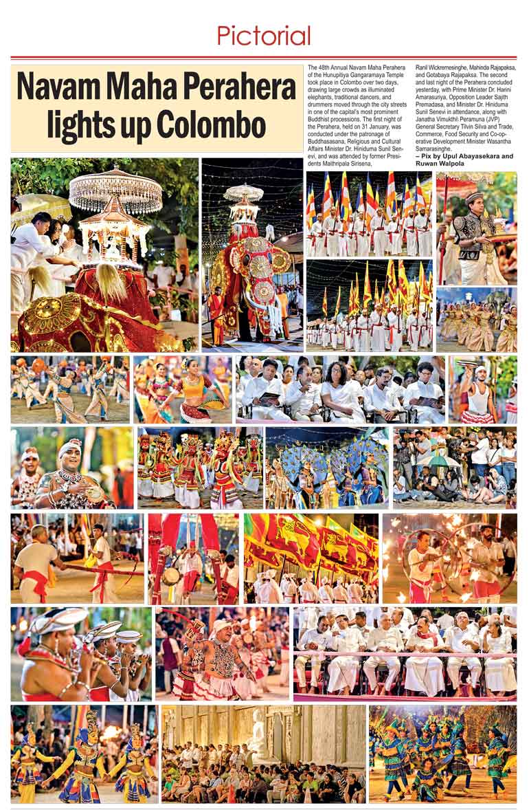The 48th Annual Navam Maha Perahera of the Hunupitiya Gangaramaya Temple took place in Colombo over two days, drawing large crowds as illuminated elephants, traditional dancers, and