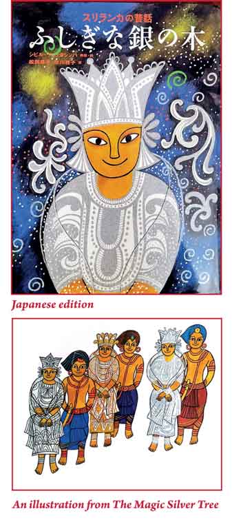 Inspired by a Lankan folk tale, the colour edition of the book was originally published in 2017 in Japan. It was the last of her books to be published in Japan with seven more before it, all of which were translated into Japanese by the well-known translator Kyoko Matsuko, who is also credited for the translation of The Magic Silver Tree. The Sinhala translation of it—Puduma Ridi Gaha is also now out.