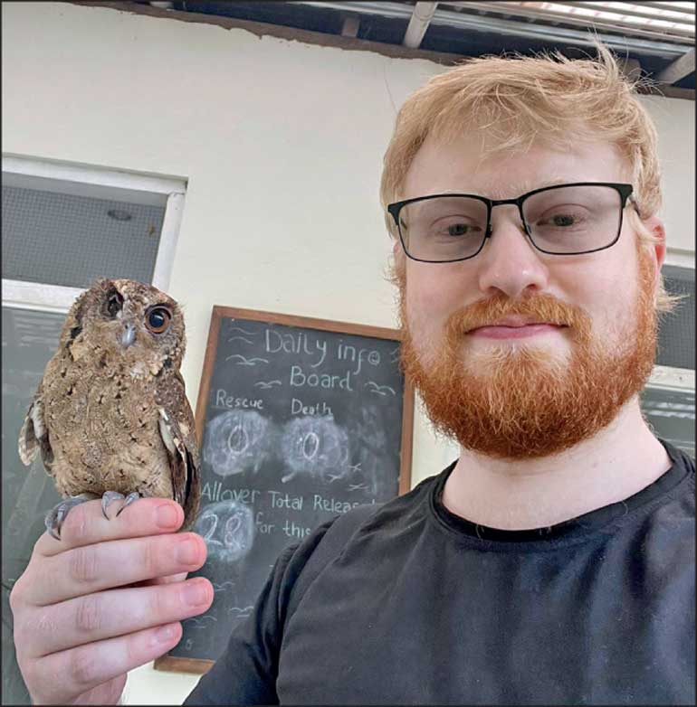 Marc Katz with a rescued Sunda Scops Owl in Bali, Indonesia