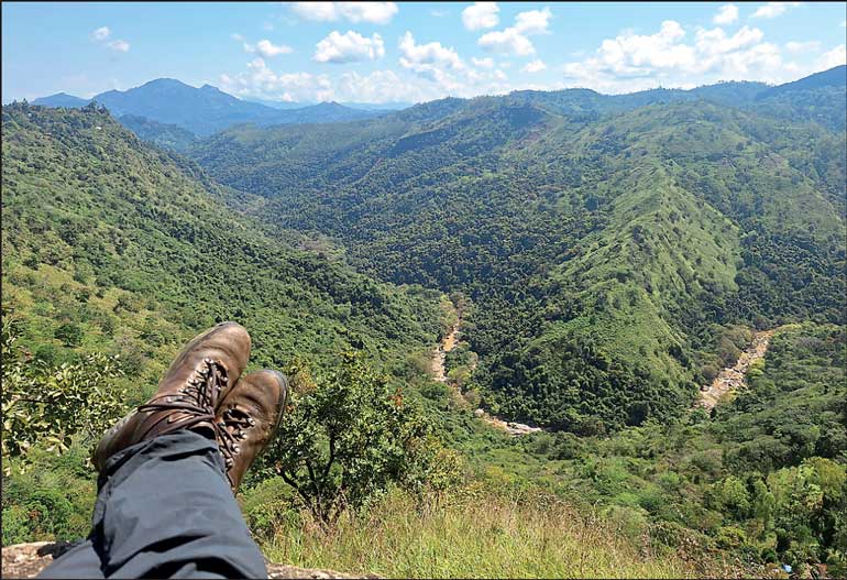The author captures his boots while atop a rock en route on the Pekoe Trail