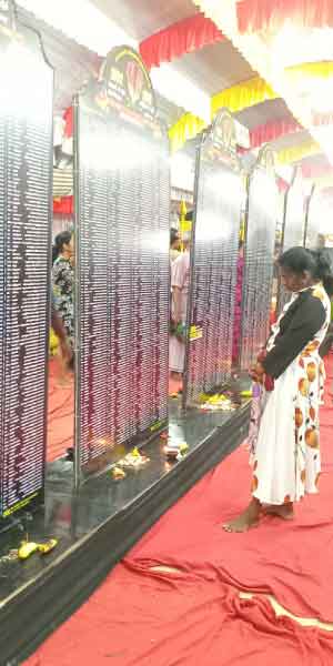 As I moved away fast—it was not a place that one could keep the equilibrium of detachment, several paradoxical images overlapped in my mind. The harmless gossipy chatter that I had heard around the premises of the Naga Viharaya in the morning by Sinhalese grandmothers, the gentle smile they would give to an aged female mango seller opposite the temple, a WhatsApp message I had seen by a ‘professor of reconciliation’ of a leading university who was organising some event akin to a lucky dip dinner or whatever of that nature ‘to commemorate Sri Lanka’s peace and conflict studies based reconciliation.’ The image of that young woman who stood frozen as if carved in stone in front of a name representing a life ended over 16 years ago. Alongside these arose many of the similar images witnessed from the South—where agonised parents look for their children in printed name lists and the memory of scores of interviews done by this writer from ‘both sides’ of the ethnic divide.