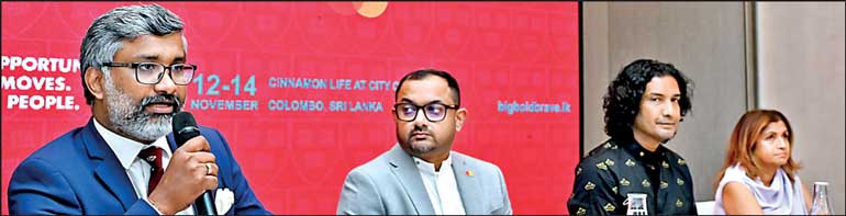 Harvard Club of Sri Lanka President and Big Bold Brave 2025 Project Co-Chair Kandeban Balendran (left) addresses the media briefing. Mastercard, Sri Lanka and Maldives Country Manager Sandun Hapugoda, Big Bold Brave 2025 Project Co-Chair Asanka De Mel and Harvard Club of Sri Lanka Vice President Aruni Goonethilleke are also present – Pic by Daminda Harsha Perera