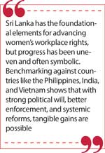Sri Lanka has the foundational elements for advancing women’s workplace rights, but progress has been uneven and often symbolic. Benchmarking against countries like the Philippines, India, and Vietnam shows that with strong political will, better enforcement, and systemic reforms, tangible gains are possible. Empowering women in the workplace is not merely a matter of fairness—it is a driver of national prosperity and resilience. As the region races toward inclusive development, Sri Lanka must ensure its women are not left behind.
