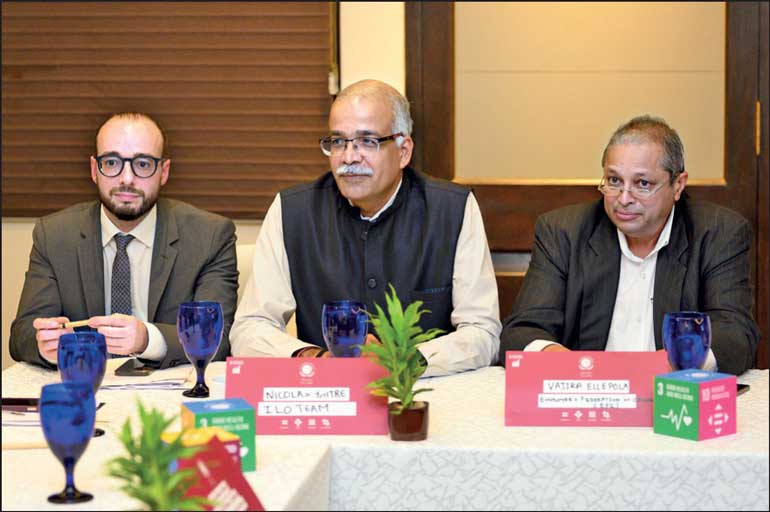 The roundtable was also joined by ILO specialists Anoop Satpathy, Wage Specialist, Nicolas Maitre, Economist and Ravi Peiris, Senior Employer Specialist who presented key elements of the ILO conclusions on Wage Policies including living wages and contributed to the discussion relating to its advancement of living wages in the context of Sri Lanka. It was mentioned that there is no ‘one size fits all’ approach in aspiring towards this objective. Sri Lanka can take note of their current practices in collective bargaining and wage and benefit fixation and move towards promoting ‘living incomes’ which will also include wages along with other benefits that support workers’ living standards.