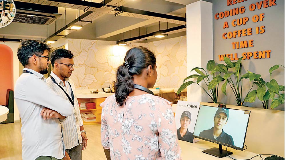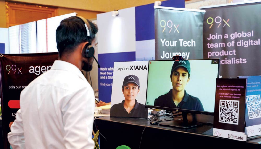 University of Colombo students interacting with Xiana at the career fair