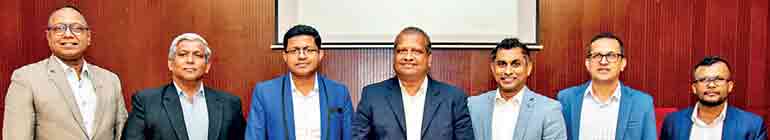 From left: NCE Secretary General/CEO Shiham Marikar, EDB Director General (acting) Erandika Dissanayake, Dialog Enterprise Head of SME Products Sameera Wijerathna, Group Chief Officer Navin Pieris, DSI Samson Group Director Dilshan Rajapaksha, APIDM Co-Founder/CEO Amitha Amarasinghe, and CAP Ceylon Founder/Director/CEO Ranjan T. Hanchapola