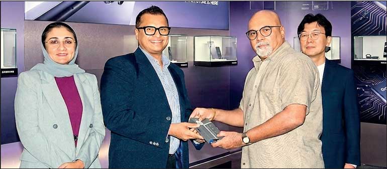 From left: Dialog Axiata Assistant Vice President – Group Corporate Planning and Strategy Shiromy Ali, Chief – Dialog Business Services Hemaka Balasooriya, first pre-order customer Shanaka Fernando, and Samsung Managing Director Sang Hwa Song
