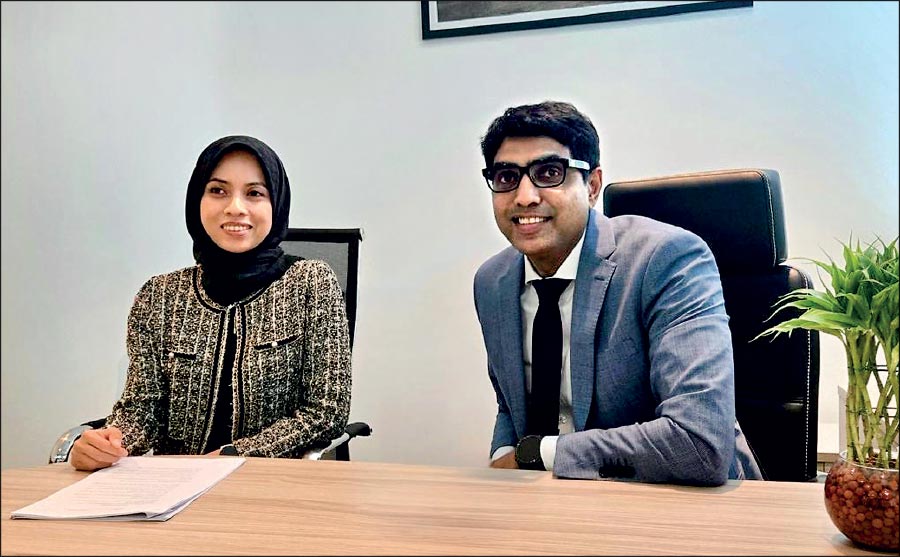 EDOTCO Sri Lanka Country Managing Director Gayan Koralage (right) and EDOTCO Group Director of Governance, Risk and Compliance Datin Azzahraa Annuar