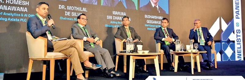 Panel discussion on AI Implementation Challenges: From Investment to Impact featuring, Dialog Axiata Group Chief Analytics and AI Officer Dr. Romesh Ranawana, Digital Economy Ministry Acting Secretary Waruna Sri Dhanapala, SLT Group Chairman Dr. Mothilal De Silva, Mobitel COO Sudharshana Geeganage, and moderated by Analysys Mason – Dubai Sr. Principal Arun Pai