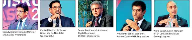 A high-powered panel discussion titled “Roadmap to Becoming South Asia’s Innovation Hub” featured Central Bank Governor Dr. Nandalal Weerasinghe, ICTA Chairman and Presidential Adviser on Digital Economy Dr. Hans Wijayasuriya, Senior Economic Adviser to the President and EY Sri Lanka and Maldives Country Managing Partner Duminda Hulangamuwa, and World Bank Country Manager for Sri Lanka and Maldives Gevorg Sargsyan with TWC Holdings Founder and Chairman Thilan Wijesinghe moderating the session.