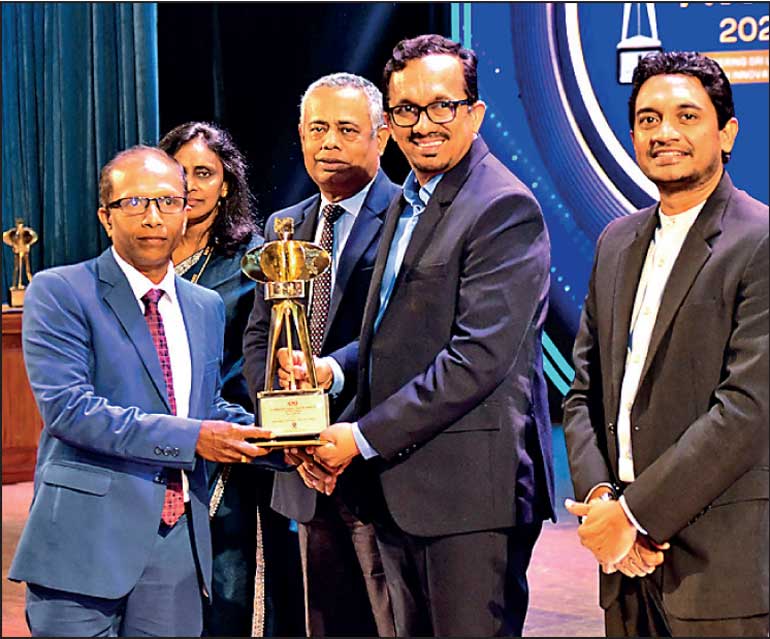 Sysco LABS Vice President – Engineering Rohana Kumara (left) accepts the award for “Exporter of the Year – ICT Sector”