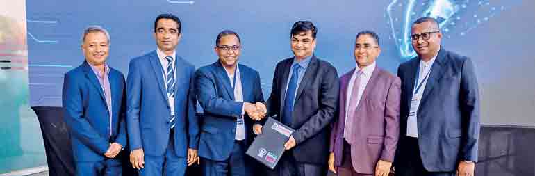 From left: LankaPay Deputy Chief Executive Officer Dinuka Perera, FITIS Chairman Dr. Dayan Rajapakse, LankaPay Chief Executive Officer/FITIS Senior Vice Chairman Channa de Silva, eMudhra SAARC and Central Asia Head Rajesh Srinivasan, TruConnect Technologies Managing Director Bin Mohamed, and FITIS Vice Chairman Thariq Sanoon