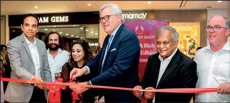 From left: The Body Shop Sri Lanka Director Kosala Rohana Wickramanayake, British High Commissioner to Sri Lanka Andrew Patrick, Quest Retail Executive Chairperson Shriti Malhotra, The Body Shop South Asia Chief Revenue Officer Vishal Chaturvedi, Softlogic CEO Terry O’Connor and One Galle Face General Manager Sachin Dhanawade