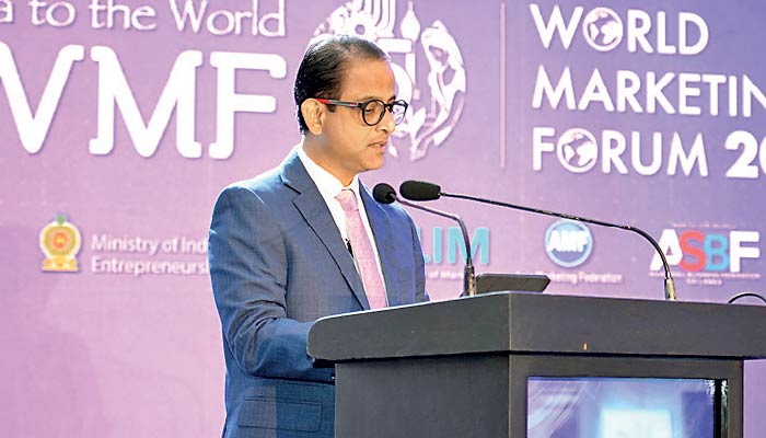 BOC Chairman Kavinda de Zoysa delivers the keynote address under the theme “Marketing Drives National Competence and Growth” at the World Marketing Forum 2025 |