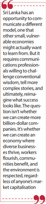 Sri Lanka has an opportunity to communicate a different model, one that other small, vulnerable economies might actually want to learn from. But it requires communications professionals willing to challenge conventional wisdom, tell more complex stories, and ultimately, reimagine what success looks like.