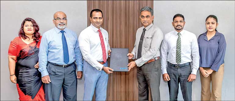 Commercial Bank Assistant General Manager – Personal Banking Kapila Liyanage (third from left) and David Pieris Automobiles General Manager Sales and Marketing Yasantha Abeykoon exchange the agreement in the presence of representatives of the two companies