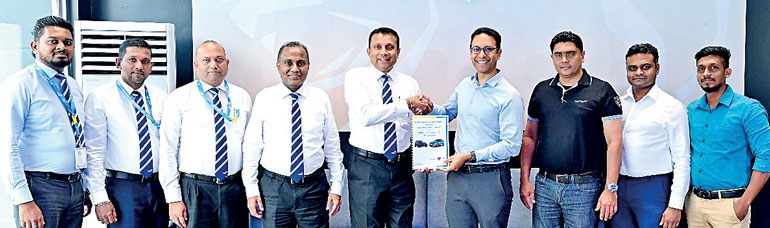 From left: HNB Bank Associate Harshana Munasinghe, Assistant Manager – Leasing Chamindra Mallikaarachchi, Product Manager – Leasing Mahesh Ratnayake, Vice President – Leasing Udara Pathinayake, Senior Vice President/Head of Retail Banking Kanchana Karunagama, CarMart Director/CEO Yasendra Amarasinghe, Manager – Sales Sasha Goonewardena, Manager Trevine Edward, and Manager – Information Technology Subash Wickramasooriya