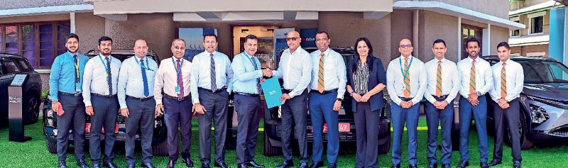 From left: Bank Associate Chamal Siriwardena, Assistant Manager – Leasing Viraj De Silva, Product Manager – Leasing Mahesh Ratnayake, Vice President – Leasing Udara Pathinayake, HNB Senior Vice President/Head of Retail Banking Kanchana Karunagama, Senior Executive Vice President/Chief Operating Officer Sanjay Wijemanne, Hayleys Fentons Managing Director Hasith Prematillake, Director – Business Development Roshani Dharmaratne, General Manager – Finance Panduka Rathnayake, and Assistant General Manager – EV Suraj Chularathne