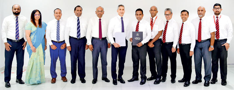 Sampath Bank Managing Director/Chief Executive Officer Sanjaya Gunawardana (sixth from left) and Toyota Lanka Managing Director/Chief Executive Officer Manohara Atukorala (sixth from right) exchanged the agreement in the presence of representatives from both institutions