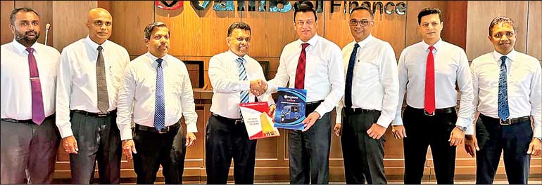 Vallibel Finance Managing Director Jayantha Rangamuwa (left) and Singer Sri Lanka Managing Director and CEO Mahesh Wijewardene exchange the agreement along with officials of the two companies