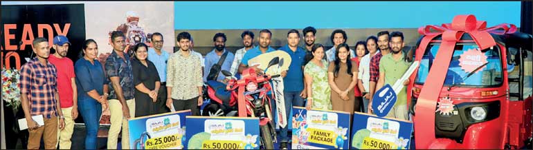 At the grand finale draw of this mega promotional campaign, the first prize, a brand-new Bajaj three-wheeler was won by Lakmal Prasantha Fernando of Katukurunda, Moratuwa. The second prize, a brand-new Bajaj Pulsar N160 Premium motorcycle, was awarded to R. K. Ajith Kumara of Katandola, Elpitiya.