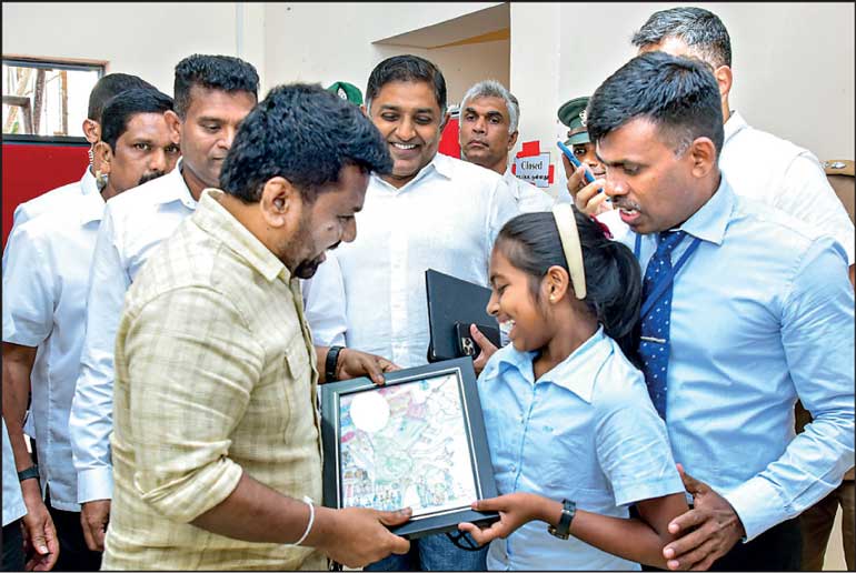 A child presents a token to President Anura Kumara Dissanayake in Puttalam
