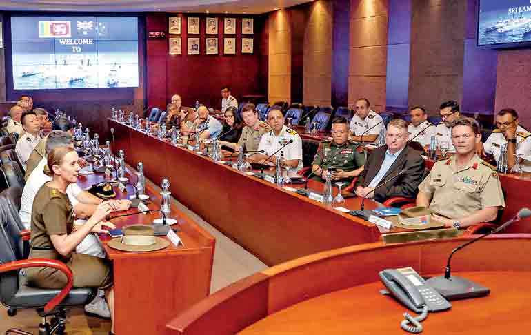 A delegation of the Australian National Defence College’s (NDC) Defence and Strategic Studies Course (DSSC), led by Colonel Brandon Wood, called on Sri Lanka Navy (SLN) Commander Vice Admiral Kanchana Banagoda on Tuesday, in an official visit to the SLN Headquarters in Colombo.