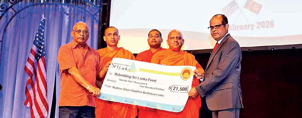 A donation of $ 21,500 from the Sun Valley Maithree Vihara in Southern California was made to the ‘Rebuilding Sri Lanka’ Fund.