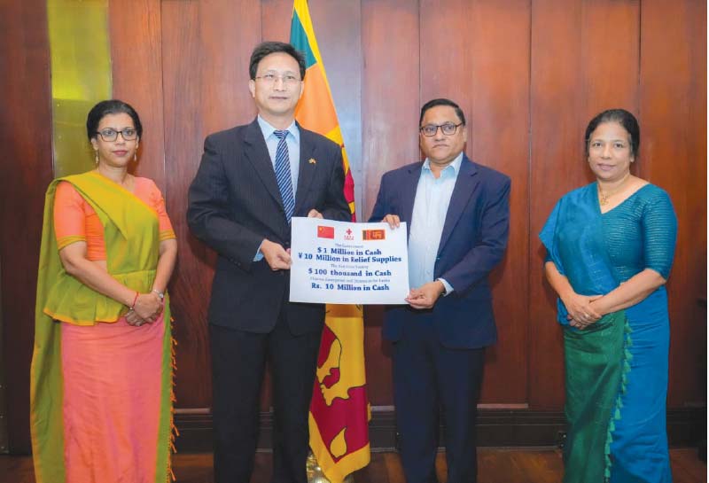 The contribution was formally handed over by Chinese Ambassador Qi Zhenhong and accepted on behalf of the Government of Sri Lanka by Foreign Affairs Minister Vijitha Herath.