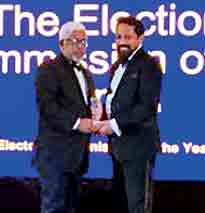 Commissioner General of Elections Saman Sri Ratnayake (left) receiving the Electoral Commission of the Year award |