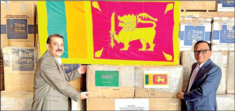 Last month, the Embassy of Sri Lanka in Riyadh dispatched one consignment of essential items valued at SAR 41,000 ($ 11,000) and another consignment consisting of 8 high-capacity tower light generators valued at SAR 160,000 ($ 43,000) donated by Energia LLC, to the Disaster Management Centre in Sri Lanka.