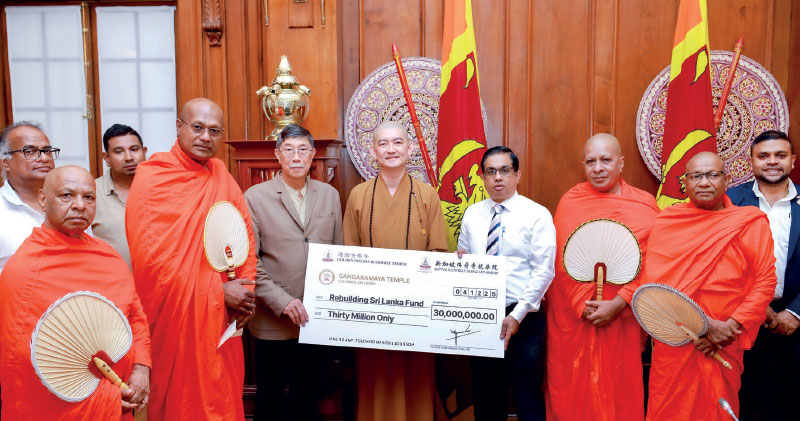 As a contribution to the Government’s ‘Rebuilding Sri Lanka’ fund established to provide relief to those affected by Cyclone Ditwa, the Hunupitiya Gangaramaya Temple in Colombo has donated Rs. 30 million.