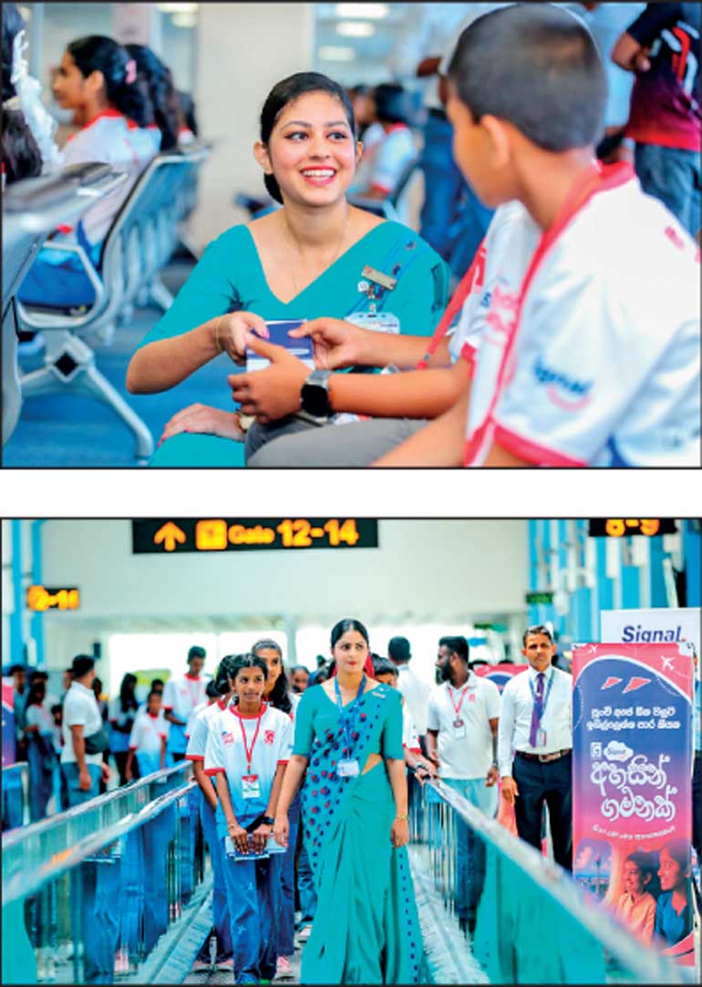 The children were warmly welcomed at Bandaranaike International Airport and taken on a guided tour by SriLankan Airlines’ Ground Handling team and Airport and Aviation Services (AASL), where they experienced the full international travel process, from check-in to boarding, before taking off to the skies with SriLankan Airlines.