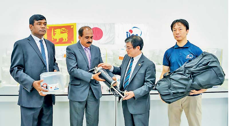 The consignment, which arrived in Sri Lanka on Wednesday was formally handed yesterday by Ambassador of Japan to Sri Lanka Akio Isomata and the Chief Representative of JICA Sri Lanka Kenji Kuronuma who presented the supplies to Deputy Minister of Defence Major General Aruna Jayasekara (Retd) and Disaster Management Centre Director General Maj. Gen. Sampath Kotuwegoda (Retd).
