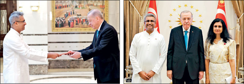 During the meeting that followed the Credentials ceremony, President Erdoğan expressed keen interest in exploring ways and means to enhance trade, economic and investment cooperation between the two countries. He also referred to Türkiye’s educational and scholarship programmes that are beneficial to Sri Lanka and highlighted the growing prospects for defence industry collaboration as well.