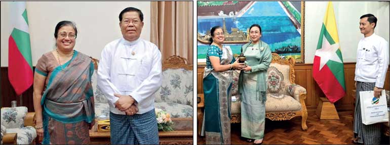 The Ambassador of Sri Lanka to Myanmar Prabashini Ponnamperuma recently met with Myanmar Investment and Foreign Economic Relations Union Minister Dr. Wah Wah Maung and Foreign Affairs Union Minister U Than Swe in Nay Pyi Taw, the administrative capital of Myanmar. The main focus of the discussions was on the promotion and improvement of economic activities between the two countries.