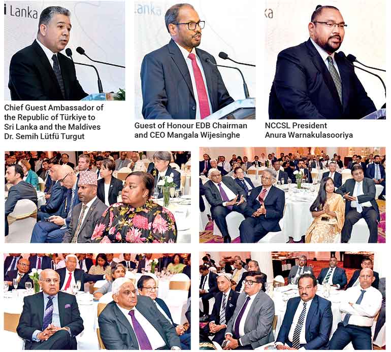 From left: NCCSL Secretary General/CEO Nilupul Chandrasena, Senior Deputy President Kavinda Rajapakse, Deputy President Dr. Lakmal Fernando, Ambassador of the Republic of Türkiye to Sri Lanka and the Maldives (Dr.) Semih Lütfü Turgut, NCCSL President Anura Warnakulasooriya, EDB Chairman/CEO Mangala Wijesinghe, NCCSL Immediate Past President Deepal Nelson, and Honorary Treasurer Chamika Godamanna