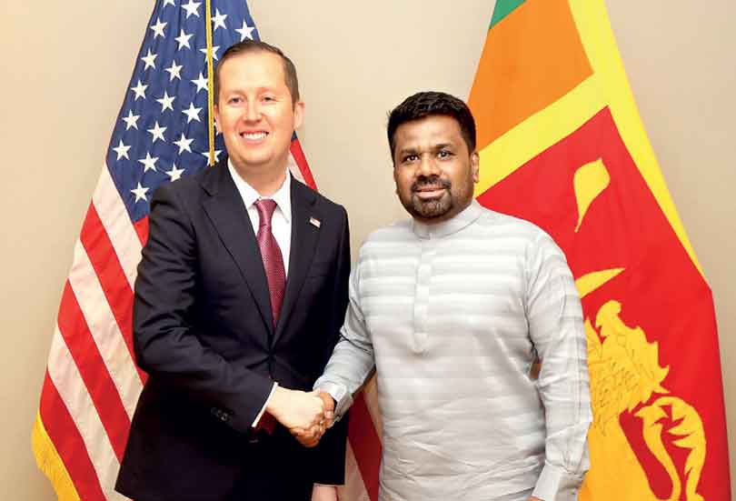 President Anura Kumara Dissanayake (right) with US Special Representative for South and Central Asia Sergio Gor