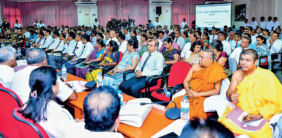 Resettlement planning, house-damage assessments, the revival of inland fisheries, and reopening of schools were also discussed. 20 acres of temple land at the Maddeketiya, Gokarella Sangamu Raja Maha Viharaya were offered for resettlement, with documentation handed over to the President.