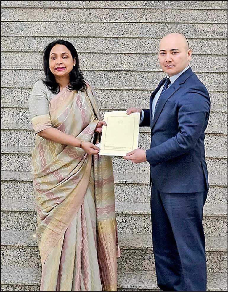 The Ambassador of Sri Lanka to the Russian Federation Shobini Gunasekera, with concurrent accreditation to the Republic of Kazakhstan, recently presented the Open Copies of Letters of Credence to Kazakhstan Deputy Minister of Foreign Affairs Alibek Kuantyrov in Astana.