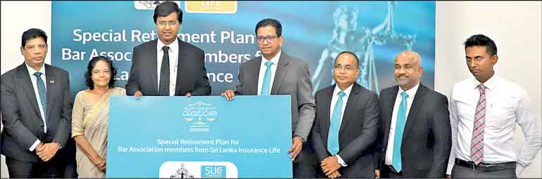 Sri Lanka Insurance Life partners with Bar Association of Sri Lanka to introduce “Sri Lanka Insurance Life Rakawarana” Retirement Plan, exclusively for members of Bar Association From left: BASL Manager – Program Office Prakalathan Thuraisingam, Administrative Secretary/CEO Suranee M. Samarasekara, BASL Chairman Rajeev Amarasuriya, SLIC Life CEO Nalin Subasinghe, SLIC Life CO – Life Dayaratne Perera, SLIC Life DGM National Sales Jagath Welgama and SLIC Life Key Accounts Manager – Broker Servicing Saman Amarasinghe