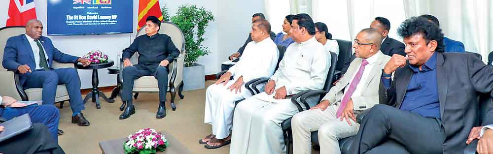 Opposition Leader Sajith Premadasa on Tuesday met with the visiting United Kingdom’s Deputy Prime Minister David Lammy, for wide-ranging discussions on democratic governance, trade expansion, and bilateral humanitarian cooperation.