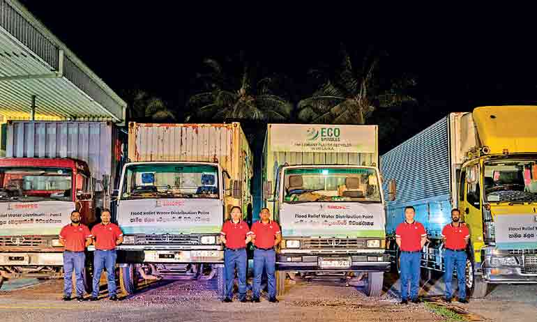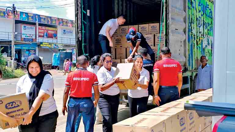 Sinopec Team sending out multiple vehicles loaded with drinking water to affected parts of Sri Lanka.