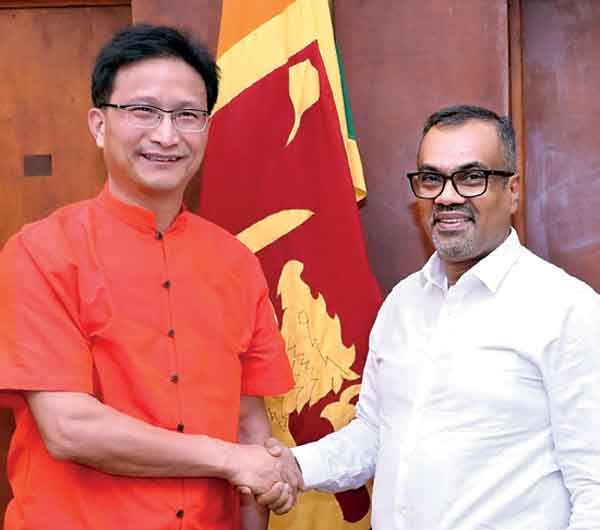 A cordial meeting between Chinese Ambassador Qi Zhenhong and Labour Minister and Economic Development Deputy Minister Dr. Anil Jayantha Fernando was held yesterday (16) in conjunction with the Chinese Spring Festival.