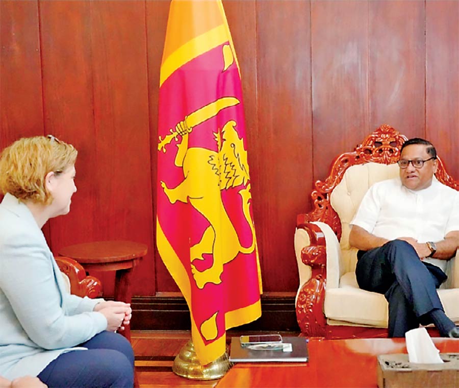 Foreign Minister Vijitha Herath (right) with Canadian High Commissioner Isabelle Catherine Martin.