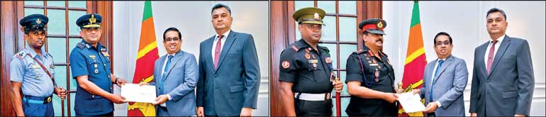 The cheques representing the financial contributions were handed over at the Presidential Secretariat to Secretary to the President Dr. Nandika Sanath Kumanayake. The donations comprised Rs. 250 million from Army Commander Major General Lasantha Rodrigo; Rs. 74 million from Navy Commander Rear Admiral Kanchana Banagoda, and Rs. 49 million from Air Force Commander Air Marshal Vasu Bandu Edirisinghe.