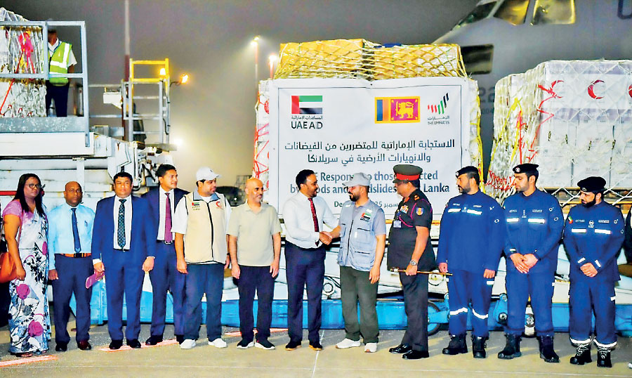 The relief items were officially handed over by UAE Embassy Second Secretary Rashed Ali Al Mazrouei to Foreign Affairs Ministry Director (Middle East) Sewwandi de Silva, Major General Sumedha Wijekoon, and CAASL Director General Captain Daminda Rambukwella.