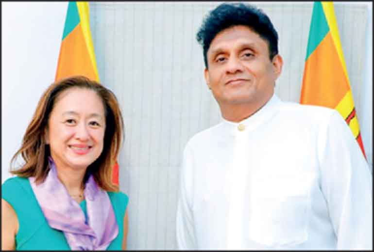US Ambassador to Sri Lanka Julie Chung (left) with Opposition Leader Sajith Premadasa